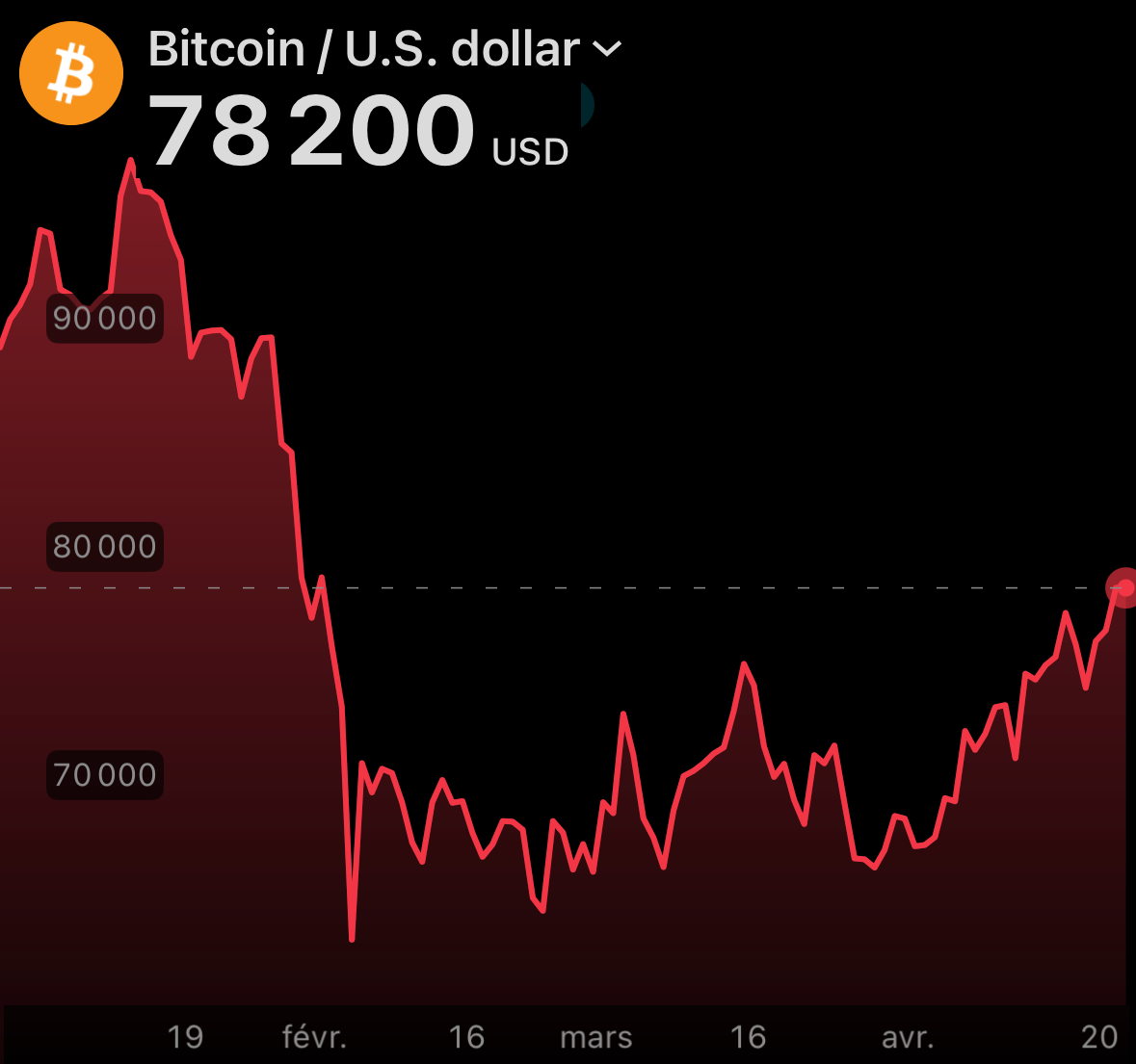 Le Bitcoin n’est pas en reste et frôle les 80.000 $