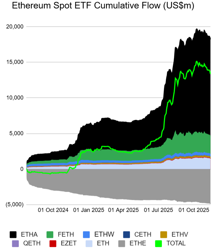Faute de demande équivalente, et cela malgré des flux entrants significatifs relativement à la capitalisation totale d’Ethereum.