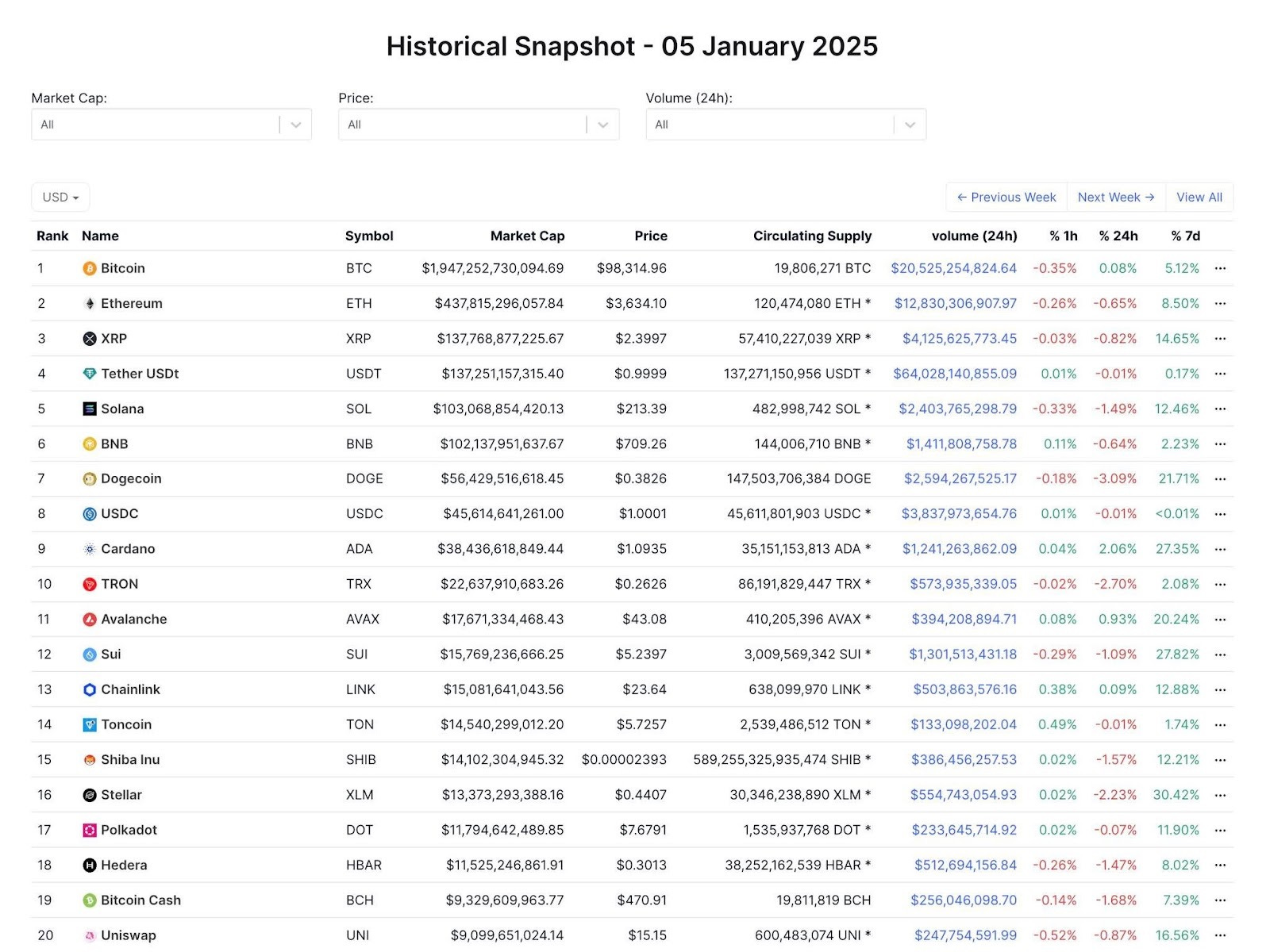 Les cours des cryptomonnaies depuis la première semaine de janvier 2025 en disent long :