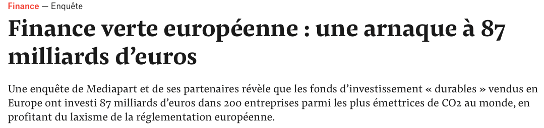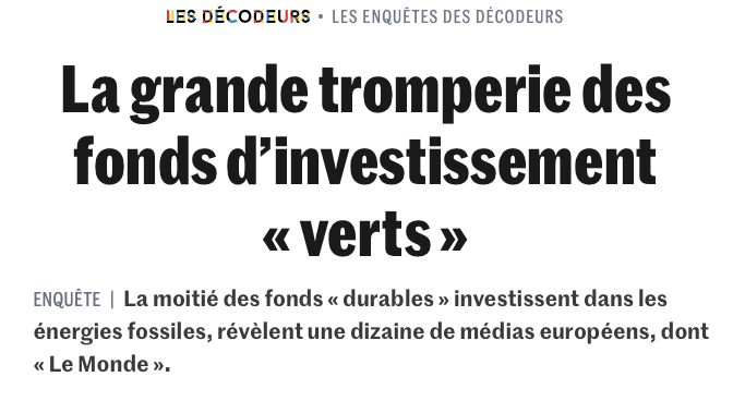La législation européenne étant particulièrement laxiste, elle permettait qu’on appelle “vert” un fonds composé d’entreprises parmi les plus émettrices de CO2 au monde.