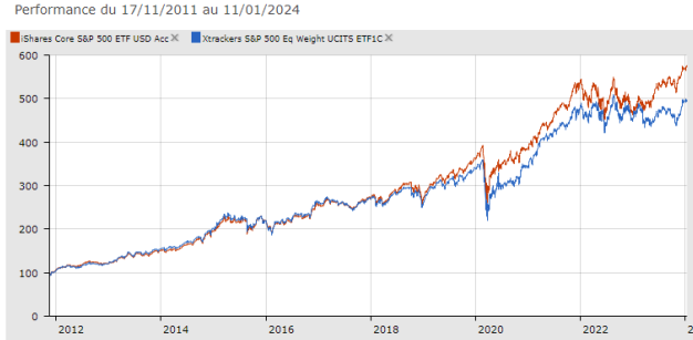Ces ETFs donnent le même poids aux 500 entreprises composant l’indice.