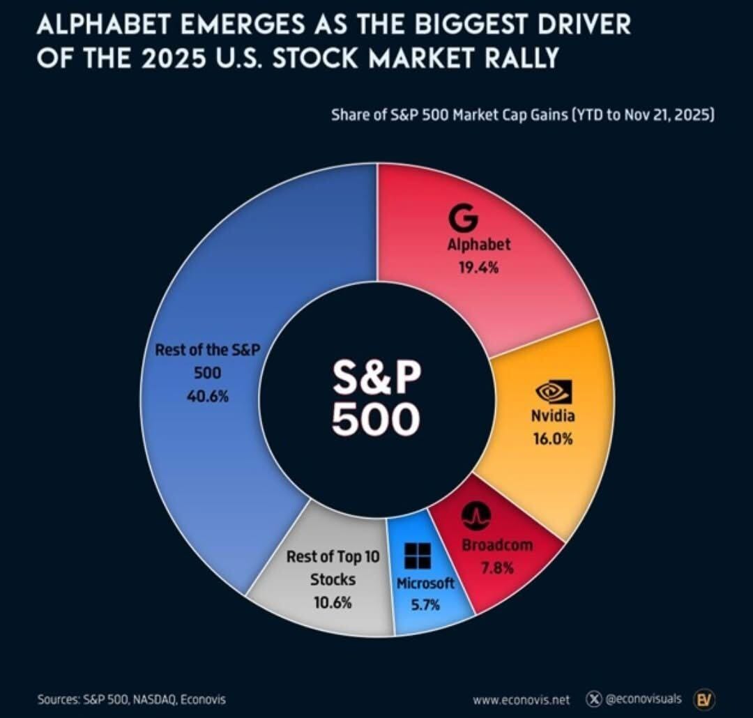 Alphabet représente près de 20 % des gains de l’indice à lui seul