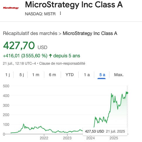 Entrée dans le S&P 500 en mai 2025, c’une première pour une entreprise crypto, qui attire les investisseurs institutionnels.