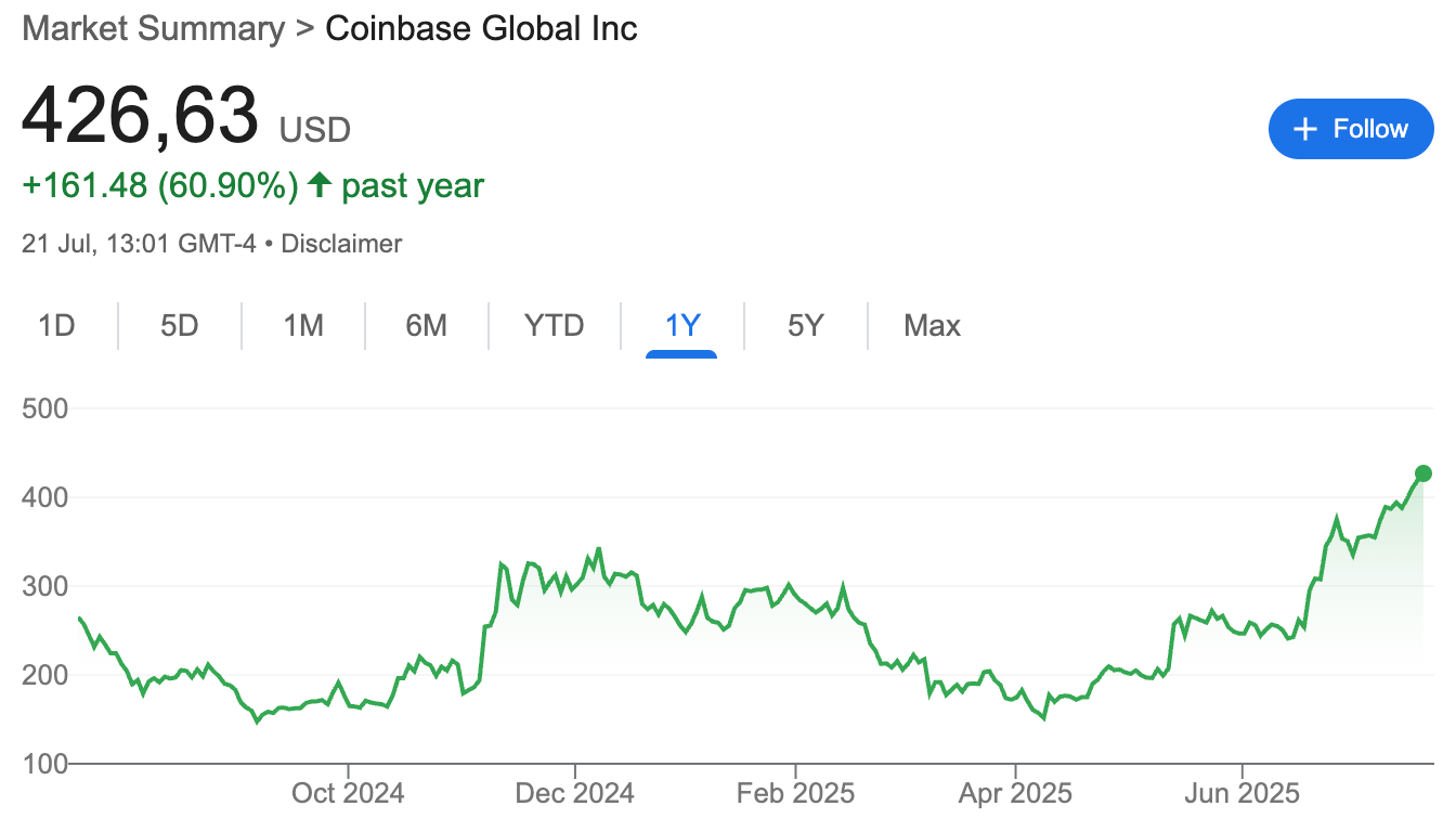 Le GENIUS Act pourrait doper le marché des stablecoins (250 Milliards de dollars) et profiter directement à Coinbase.