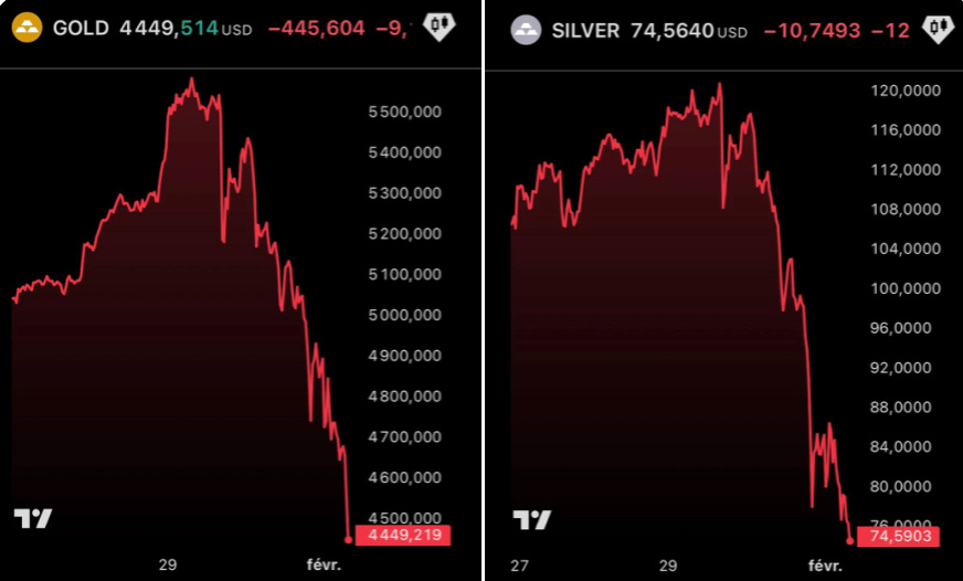 OR/ARGENT : Vendredi l’argent s’effondre de -34%, sa pire journée depuis 1921 tandis que l’Or efface 1.000 milliards de capitalisation