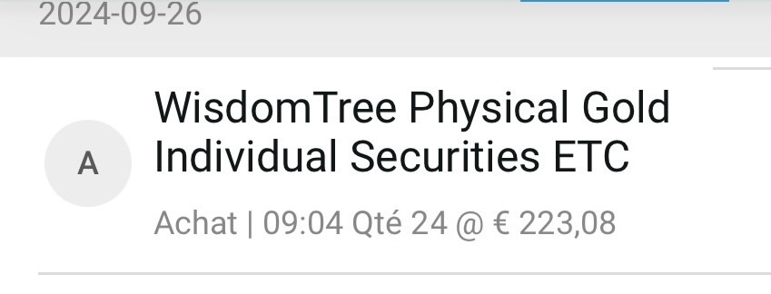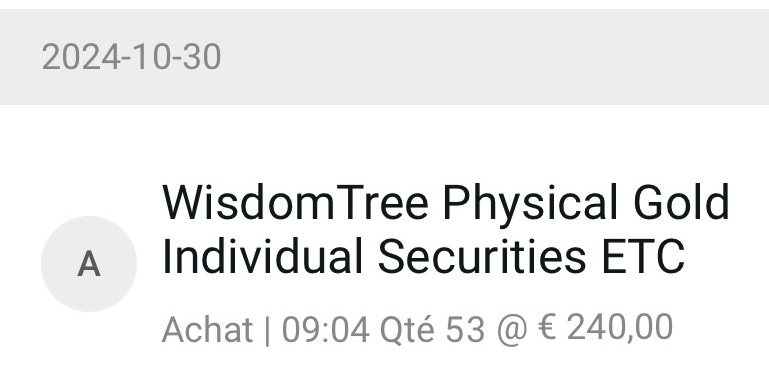 ➡️ Sur l’Or mes positions dataient de septembre 2024 (acheté à 223 €) :