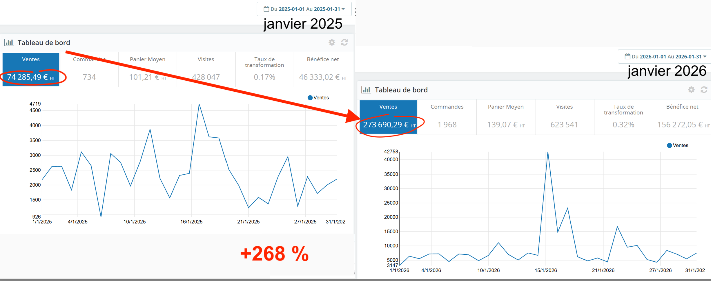 ➡️ +75 % de CA dès le 1er mois après rachat puis + 268 % en janvier sur une autre