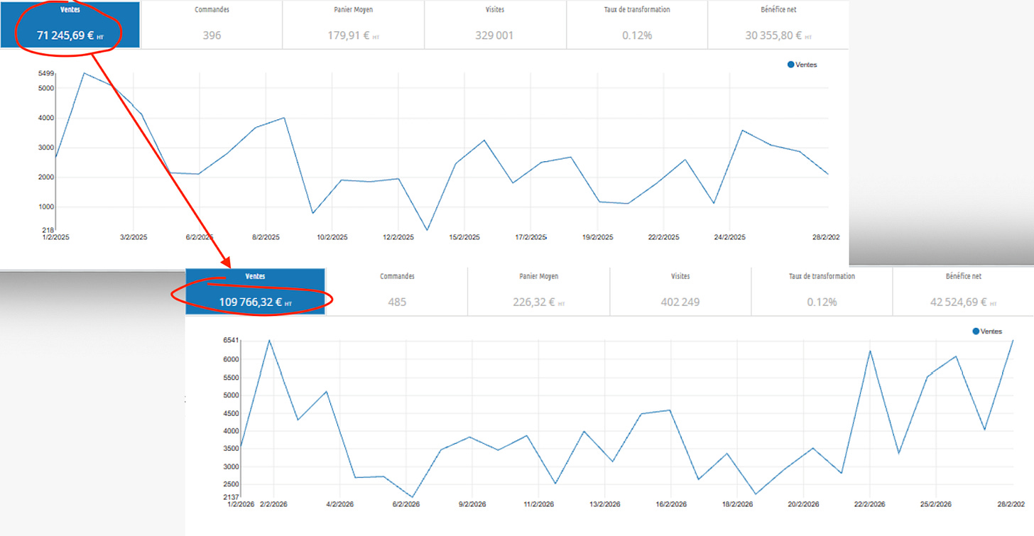 Celle dont le CA mensuel a fait un bon de + 270 % faisait déjà 660.000 € de résultat en 2025. Pas de chiffre d’affaires. De bénéfice !