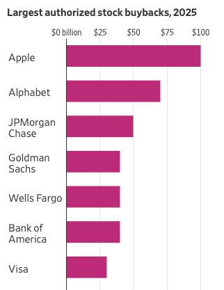 Les plus gros rachats concernent les géants de la Tech et la banque :