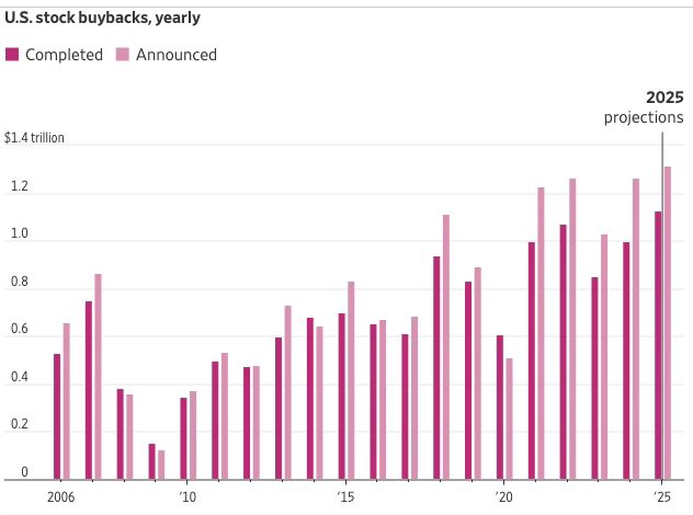Les entreprises américaines ont annoncé 983,6 milliards de dollars de rachats d'actions depuis le début de l'année.