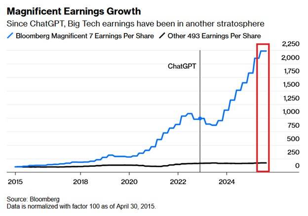 Les bénéfices des Magnificent Seven ont bondi de +145 % depuis le lancement de ChatGPT en novembre 2022
