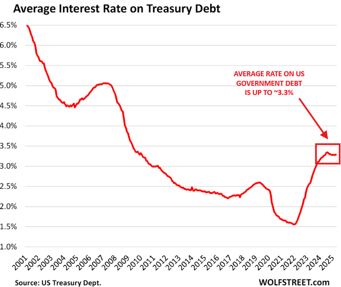 À mesure que les taux ont augmenté, la dette américaine s’est refinancée à des taux compris entre 1,5 % et plus de 3,0 % aujourd’hui.