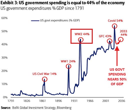 Pourquoi les dépenses publiques américaines atteignent-elles des niveaux comparables à ceux de la Seconde Guerre mondiale dans une économie « forte » ?