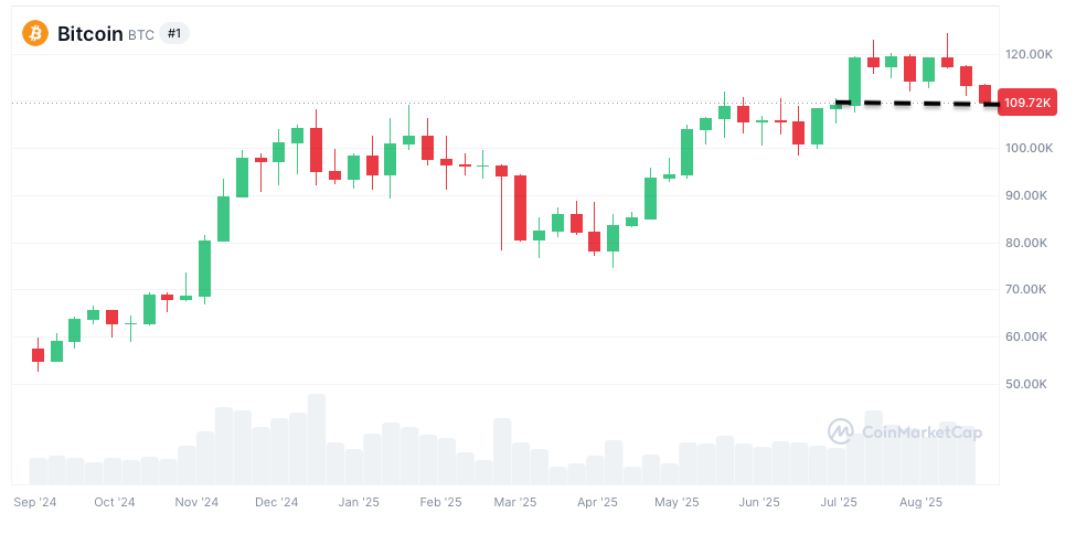 Si le Bitcoin clôture cette semaine en-dessous des 112 000 dollars, il pourrait lui falloir un certain temps pour retrouver son élan à court terme.