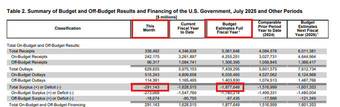 En juillet 2025 SEULEMENT, les États-Unis ont enregistré un déficit de 291 MILLIARDS de dollars.
