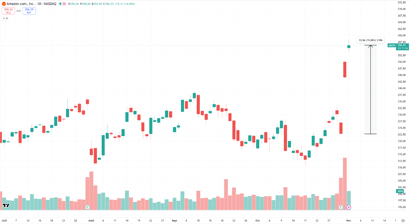 Amazon qui enregistre un gap haussier significatif