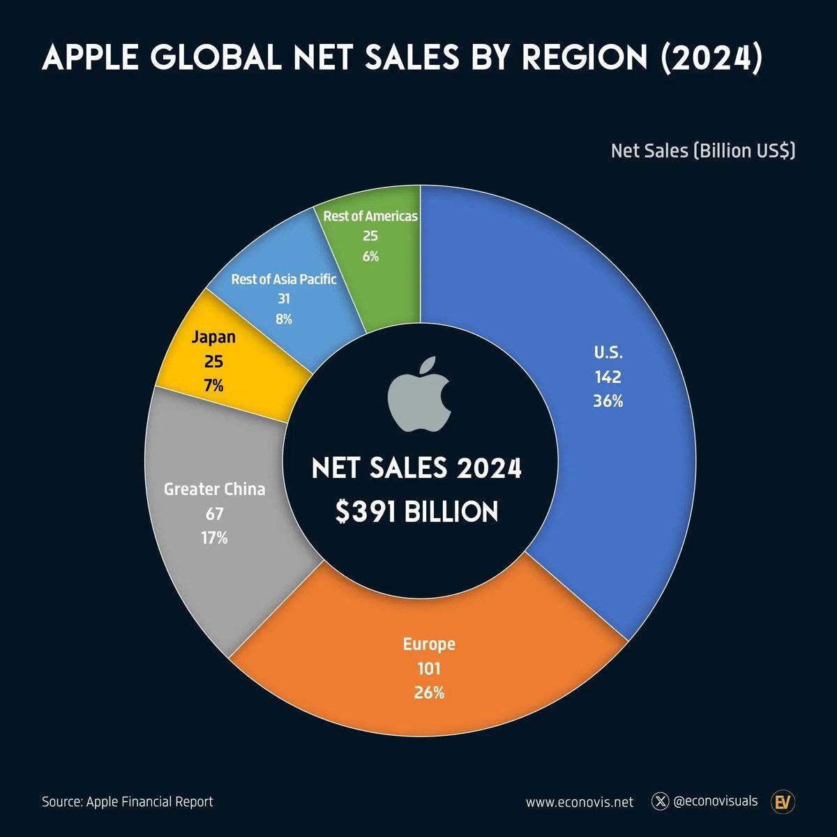 Prenons Apple : 64 % de ses revenus viennent de l'international.