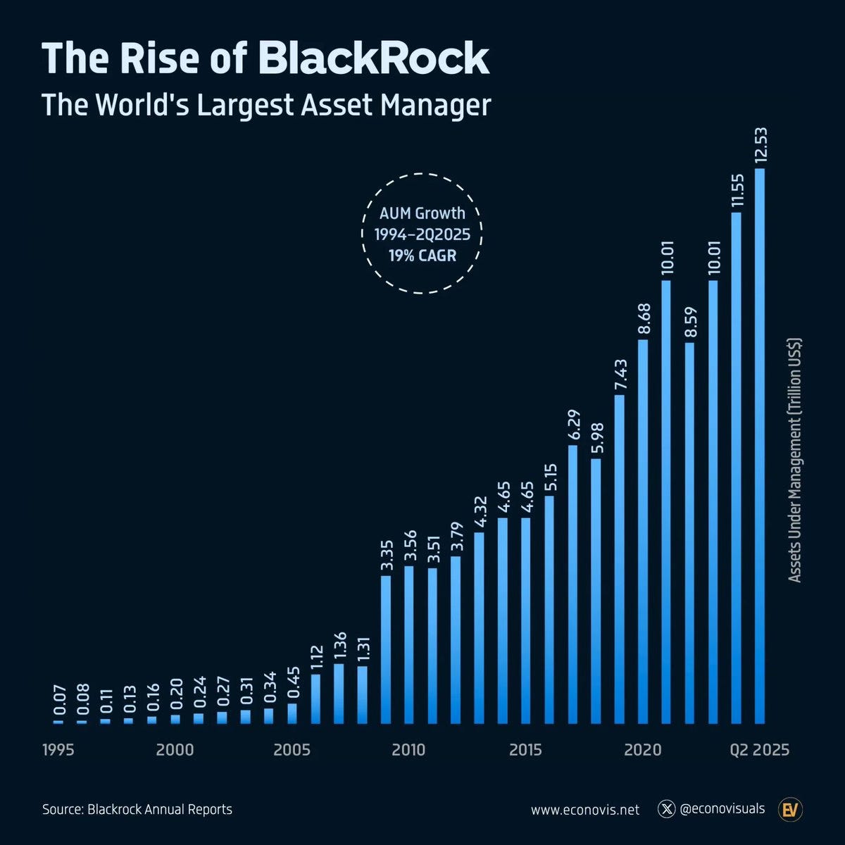 MONOPOLE : BlackRock gère désormais 12.500 milliards de dollars d’actifs, 1/8ème des valorisations boursières mondiales en 2025 !