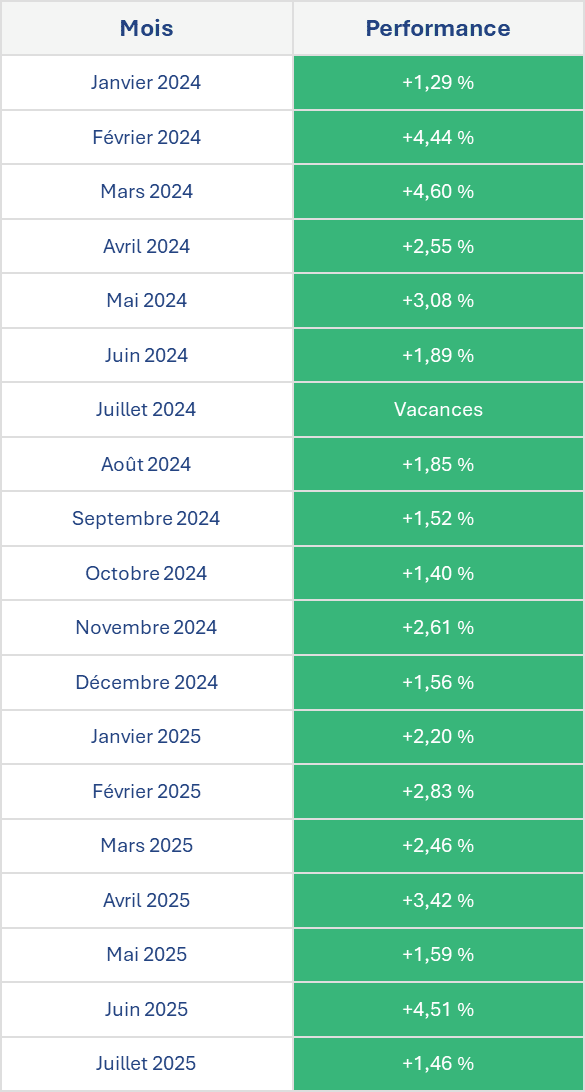 Et aucun mois en négatif ! C’est mieux que Madoff mais 100 % légal.