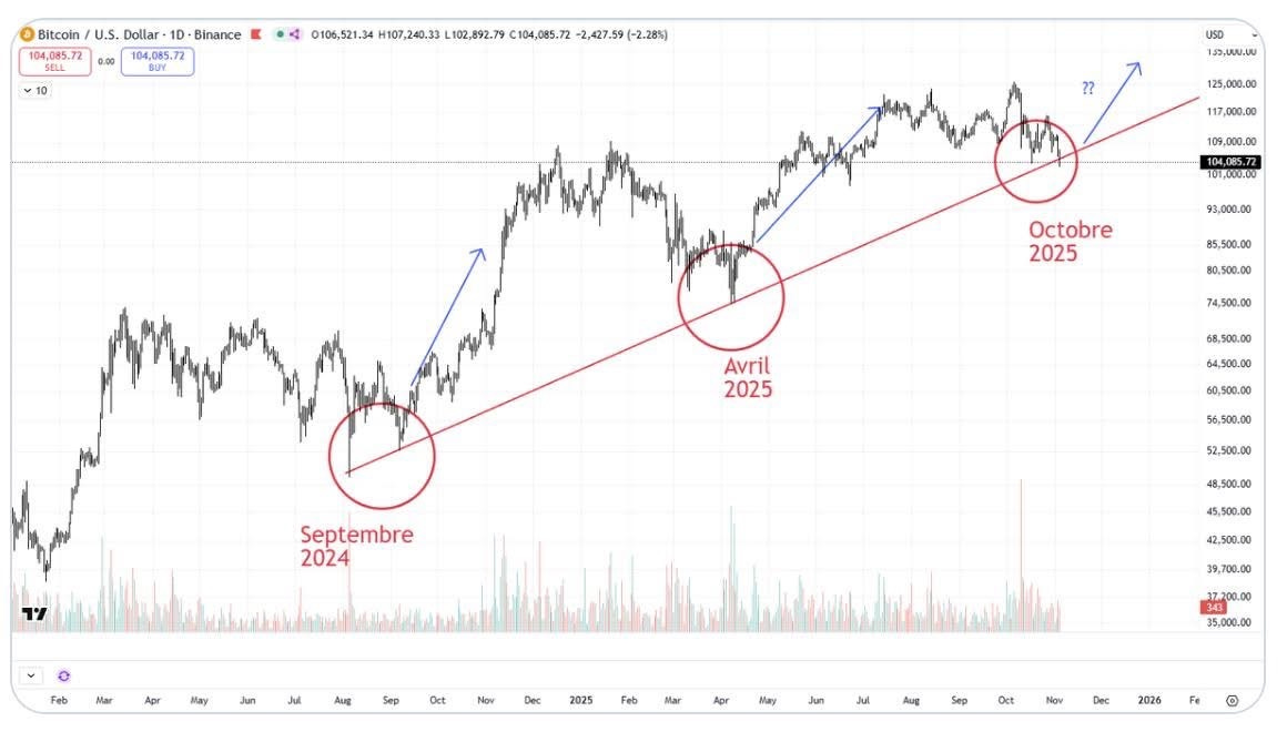 J’ai vraiment l’impression d’être dans une situation similaire à celle d’avril dernier ou septembre 2024, lorsque le sentiment de marché était très négatif (le Fear & Greed Index a atteint les 20, plus bas niveau depuis des mois !) alors que le Bitcoin rebondissait à chaque fois sur le seuil critique.
