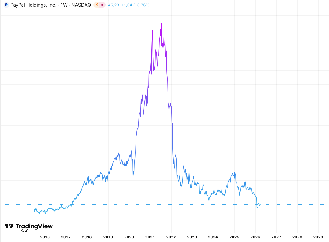Le graphique est brutal : PayPal a perdu son statut de champion de la fintech.
