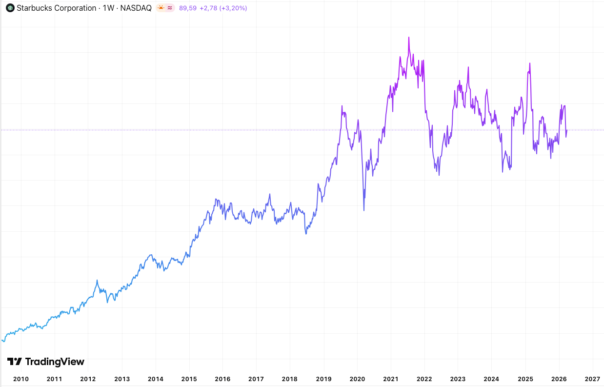 Starbucks souffre de l’inflation et de la hausse des coûts, avec un cours qui semble stagner depuis le covid.