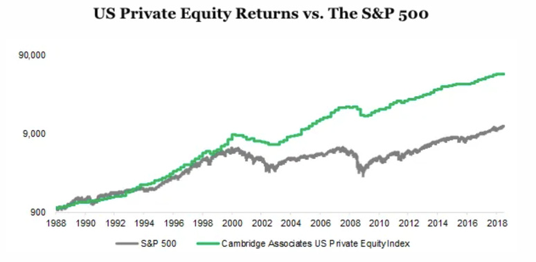 L’investissement en Private Equity a terrassé la bourse sur les 30 dernières années :