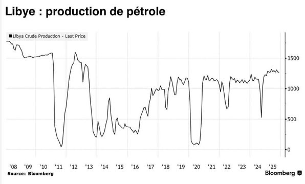 En Libye, la production atteignait 1,6 million de barils par jour avant la chute de Kadhafi en 2011.