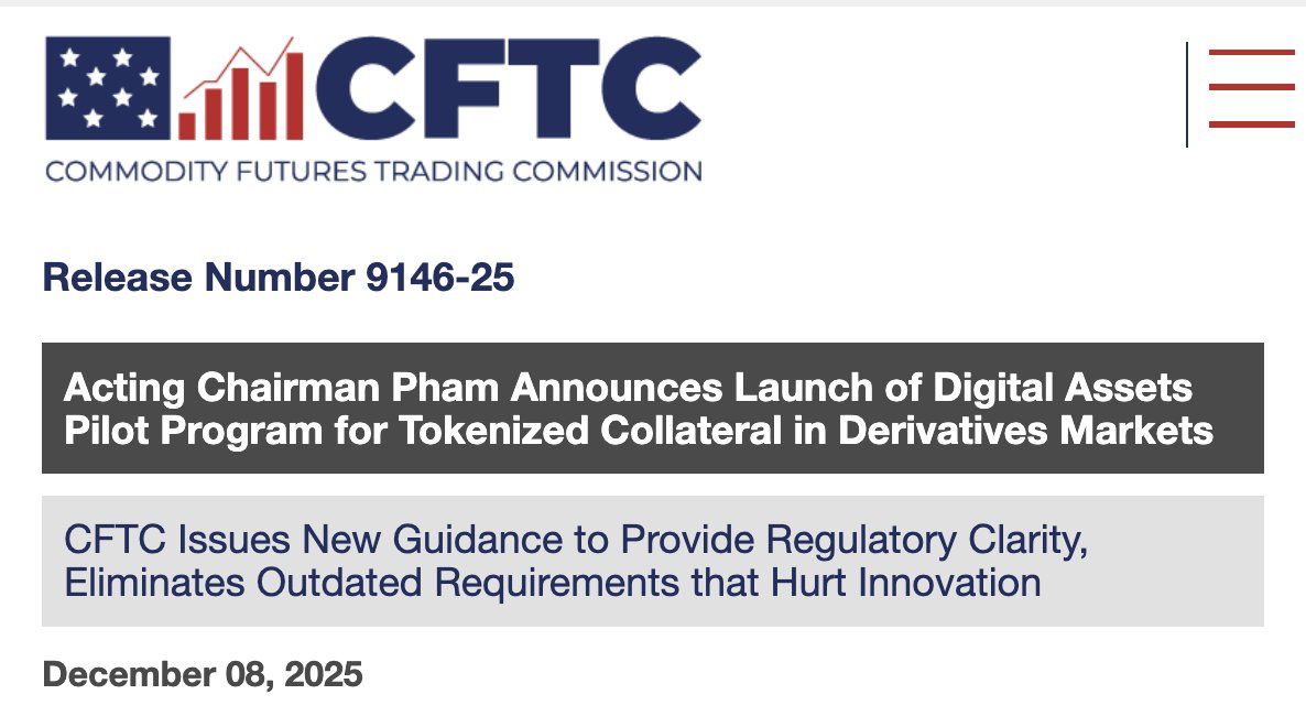 Le 8 décembre, la Commodity Futures Trading Commission (CFTC) a annoncé via un communiqué officiel (Release 9146-25) l’approbation d’un cadre permettant :
